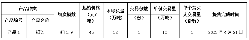 2.本期产品结算率:细砂(细度模数约1.9)为95%。