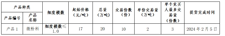 特别提示:本期竞价产品细度模数≤1.0,竞买人需实地查看检测,确定满足自身需求后参与竞价。